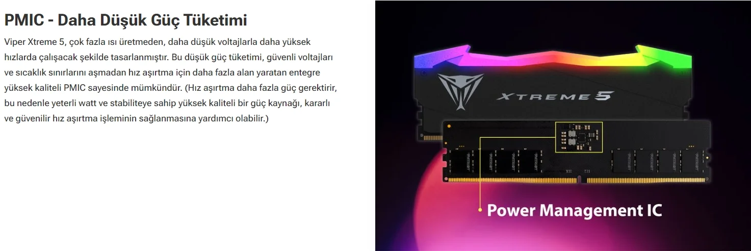 Patriot Viper Xtreme 5 RGB PVXR548G80C38K 48GB (2x24GB) DDR5 8000MHz CL38 Gaming Ram Genel Özellikler