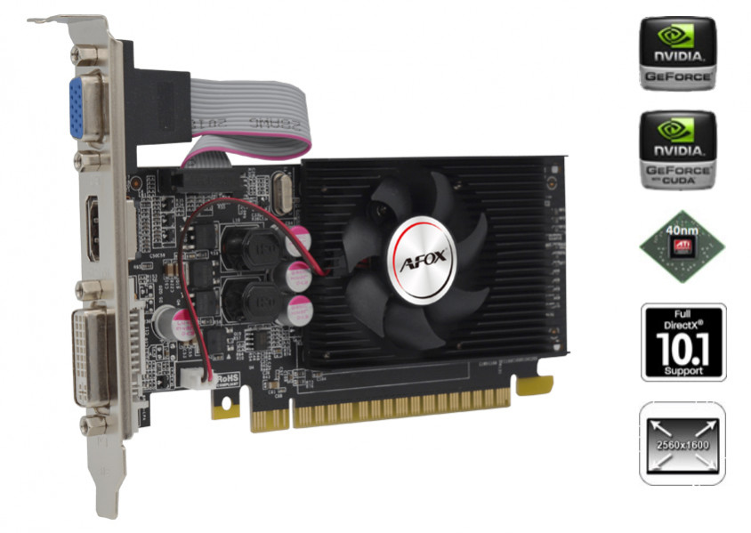 Düşük maliyetli ve küçük boyutlu tasarımıyla ofis çalışanlarının favori ekran kartı olan Afox GeForce G210, gücünü 40nm GPU mimarisinden alır ve DX10.1 desteği ile birlikte gelir.