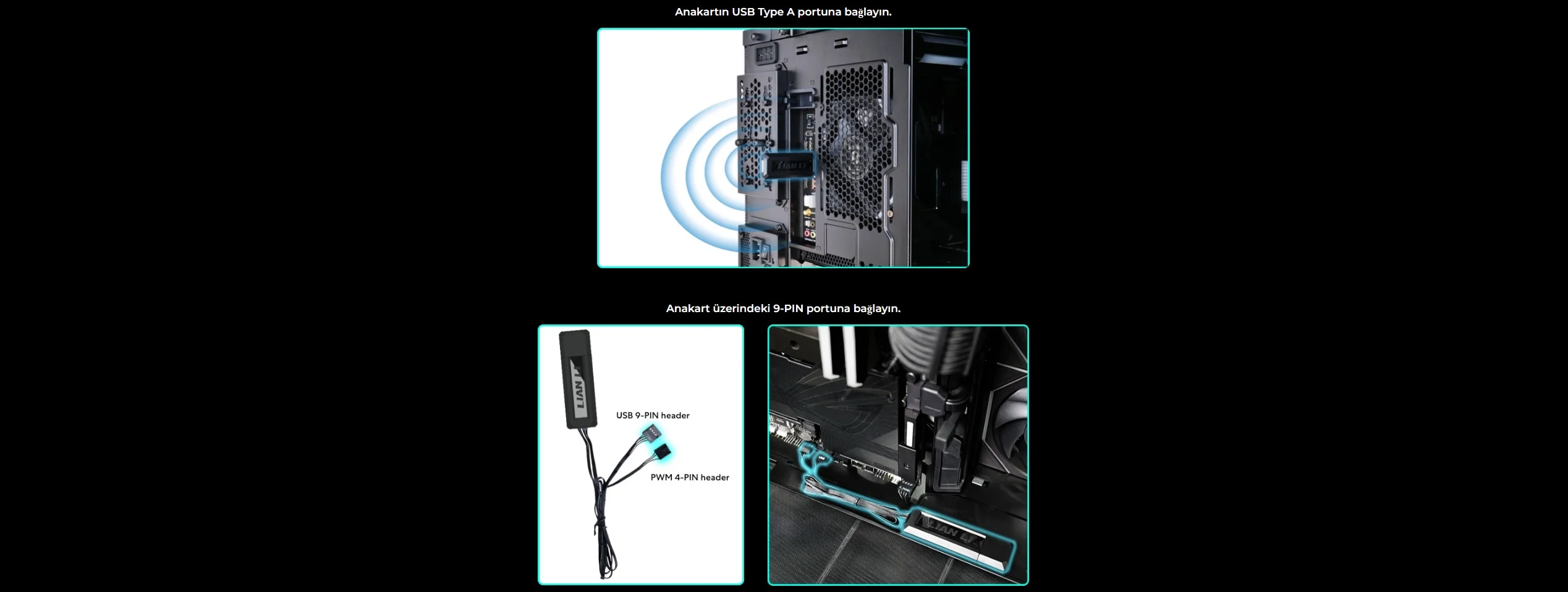 Fan hızını anakartla senkronize etmek için lütfen ikinci bağlantı yöntemini kullanın ve düzgün çalışması için kontrolcüden gelen PWM kablosunun anakarta bağlı olduğundan emin olun.