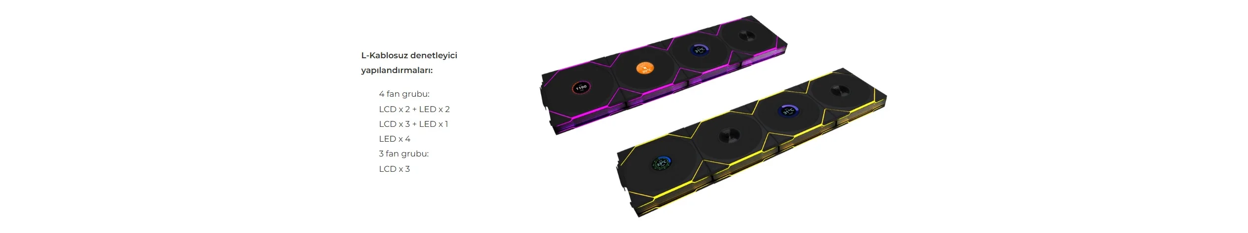 Geleneksel bağlantı yöntemini kullanmak yerine, L-Wireless Sync Controller, kabloyu denetleyiciye bağlamadan hem aydınlatmayı hem de fan hızlarını kontrol eder. Fanlar, anakarttaki 4-PIN fan başlığı veya bir SATA güç kablosuyla çalıştırılabilir.
